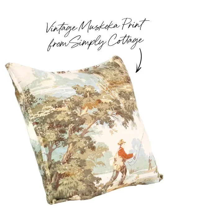 The pillows and linens are from Cuddle Down in Ottawa, Ontario, soft and timeless, just like the ones inside the main cottage.
