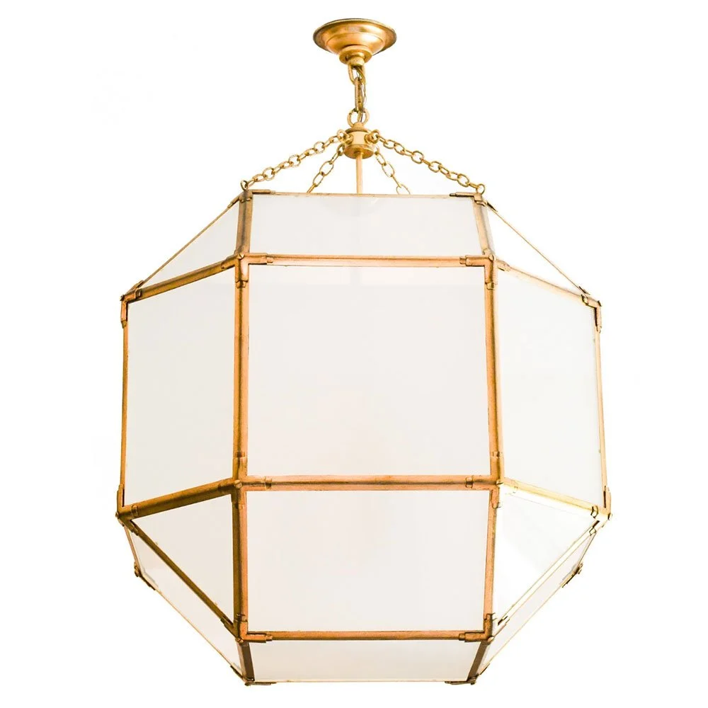 Morris Large Lantern in Gilded Iron with Frosted Glass